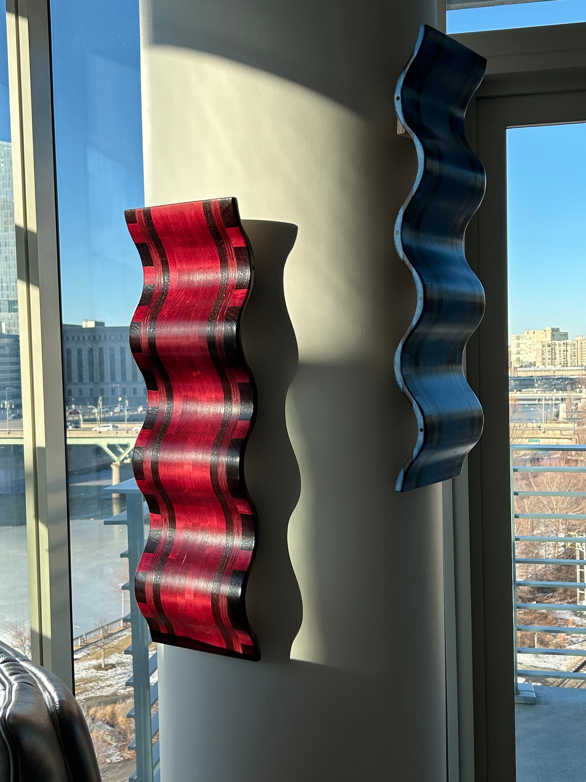 Indulge in the allure of our Hardwood Curved Wall Art. Handcrafted from exotic wood and dyed a striking blue, this sculpture adds a touch of sophistication and charm to any space. Elevate your home decor with this exclusive piece.
